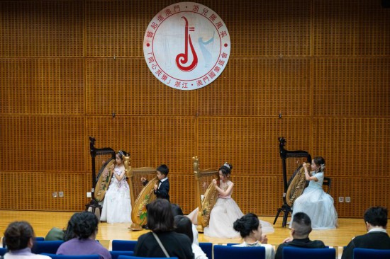 2月8日,演奏者在“同心共乐”浙江·澳门国乐盛会上演奏箜篌。新华社发(张金加摄) 新华社澳门2月8日电(记者齐菲、宋晨)“同心共乐”浙江·澳门国乐盛会8日在澳门艺术博物馆举办。