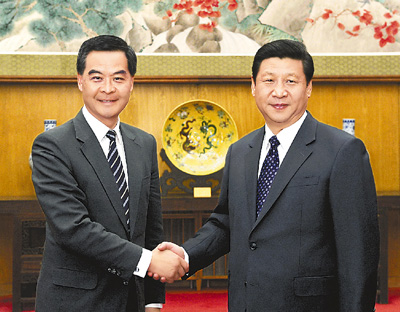 12月20日,中共中央总书记、国家副主席习近平在北京中南海会见来京述职的香港特别行政区行政长官梁振英。